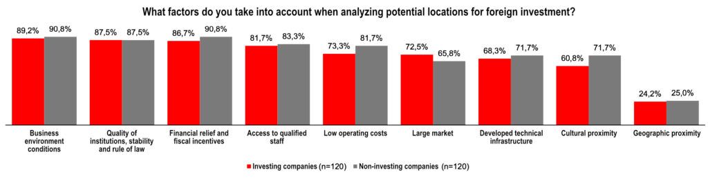 The 90% of Polish entrepreneurs indicate the conditions for doing business as the most important factor influencing their potential decisions to locate their business abroad. They consider good conditions to be primarily friendly legal and tax regulations, and the quality of functioning of public administration and business environment institutions. They also value security, as well as financial relief and fiscal incentives. Many Polish companies declare great interest in expanding into foreign markets, but only a few of them undertake specific actions in this direction. Most of them do not plan to expand abroad in the next three years.