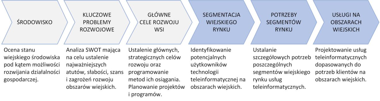 Sektor telekomunikacyjny odgrywa ważną, służebną̨ rolę wśród innych sektorów gospodarki. Usługi polegające na zapewnieniu łączności są̨ elementem procesów zachodzących w sferze produkcji, handlu i usług, a także w rolnictwie. Możliwości oferowania usług telekomunikacyjnych (ich użyteczność) na obszarach pozamiejskich, uzależnione są od rozpoznania tej przestrzeni i jej specyficznych potrzeb. Sporządzenie charakterystyk wiejskich środowisk umożliwi wyodrębnienie segmentów tego rynku, a następnie ocenę̨ możliwości zaspokojenia oczekiwań każdego z nich. Zakres prowadzonych analiz powinien dotyczyć́ zarówno potrzeb przeciętnego mieszkańca w jego codziennych życiowych sprawach, jak i działających na terenach wiejskich przedsiębiorstw (grup producenckich, hurtowni, zakładów przetwórczych) oraz organizacji publicznych i prywatnych (jednostek administracji rządowej i samorządowej, samorządu zawodowego, fundacji, stowarzyszeń́ itp.).
