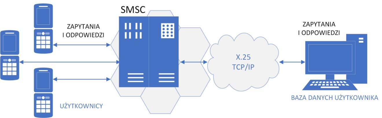 To drugie rozwiązanie umożliwia rozsyłanie i odbieranie masowych ilości krótkich wiadomości tekstowych (SMS) od określonej grupy użytkowników (lub urządzeń́), w oparciu o autonomiczny system zbudowany na bazie protokołu X.25 lub TCP/IP. Rozwiązanie takie umożliwia również̇ budowanie systemów interaktywnej wymiany informacji pomiędzy użytkownikiem i bazami danych, do których może kierować́ swoje zapytanie w formie SMS (np. o stan konta bankowego).