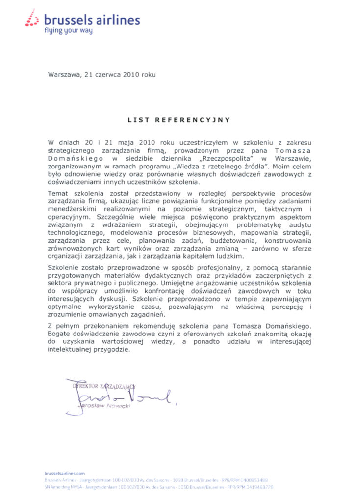My partners in organizing training for business were mainly Presspublica from Warsaw and Avenhansen from Krakow. I also conducted training as part of consulting services, as well as in cooperation with the Lazarski University in Warsaw. My training programs were a synthesis of many years of professional experience and knowledge acquired in Poland and abroad. They were distinguished by a practical approach to the presented subject matter. Analytical, planning, design and financial tools are presented in the context of a comprehensive process of strategic company management, which also includes psychological and behavioral aspects.