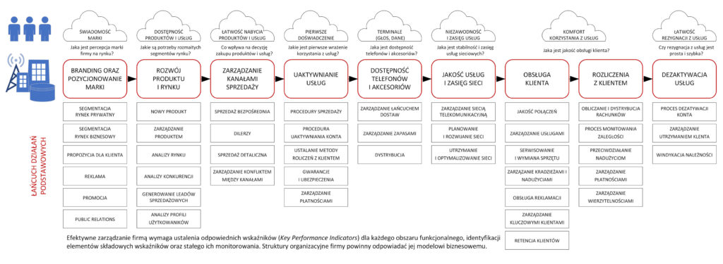 System zarządzania strategicznego w biznesie wprowadzany jest zazwyczaj stopniowo, w miarę dojrzewania młodej i rosnącej firmy. Podstawowe działania biznesowe operatorów komórkowych realizowane są w departamentach zarządzania siecią i marketingu, natomiast działania wspomagające prowadzone są w działach finansowych, i administracyjnych. W tak ukształtowanych strukturach organizacyjnych, systematycznie rozwijane są i optymalizowane biznesowe procesy i procedury. Jednym z głównych procesów jest proces planowania strategicznego, który przekłada się na kaskady strategicznych celów oraz codzienną praktykę zarządzania przez cele (MBO), wpisaną w intranetowy system programowania zadań i oceny pracowników. Ważnym elementem modelu zarządzania strategicznego są także procedury zarządzania projektami.