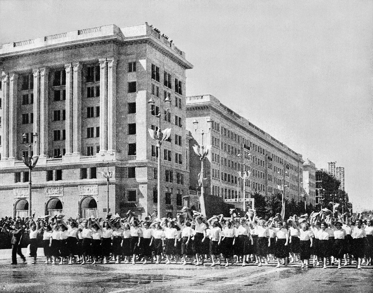 [26] W Polsce Ludowej (PRL) planowanie przestrzenne wielu miast realizowane było według radzieckich wzorców urbanistycznych, opartych na zasadach socrealizmu i centralnie planowanej gospodarki. Charakterystyczne cechy tego podejścia to monumentalna architektura, szerokie arterie komunikacyjne, wyraziste podziały na funkcjonalne strefy oraz osiedla mieszkaniowe oparte na modelu tzw. mikrorajonów (samowystarczalnych jednostek z dostępem do podstawowych usług). Odbudowa i rozwój polskich miast po II Wojnie Światowej podporządkowane były ideologicznym założeniom industrializacji, kolektywizacji oraz eliminacji śladów burżuazyjnej przeszłości. Przykładem radzieckiego wpływu na planowanie przestrzenne w Polsce jest Marszałkowska Dzielnica Mieszkaniowa (MDM) w Warszawie, projektowana na wzór Moskwy oraz Nowa Huta – modelowe, zbudowane od podstaw socjalistyczne miasto. W Gdańsku, Wrocławiu i Poznaniu stosowano typowe dla ZSRR rozwiązania modernistyczne i socrealistyczne, zastępując historyczną tkankę miejską prostymi, funkcjonalnymi blokowiskami. Po 1956 roku, wraz z odejściem od doktryny realizmu socjalistycznego, urbanistyka w Polsce zaczęła stopniowo odchodzić od radzieckich wzorców.