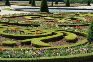 [2] Ogrody barokowe to styl rozwinięty w XVII i XVIII wieku, charakteryzujący się geometrycznym układem, symetrią i precyzyjnie formowaną roślinnością. Centralnym punktem kompozycji jest najczęściej pałac, od którego promieniście rozchodzą się aleje, partery kwiatowe i żywopłoty, często uzupełnione fontannami, rzeźbami oraz widokowymi tarasami. Ogród barokowy pełnił funkcję reprezentacyjną i symbolizował kontrolę człowieka nad naturą. Najsłynniejszym przykładem jest Wersal we Francji, a w Polsce ogrody w Wilanowie i rodu Branickich w Białymstoku.