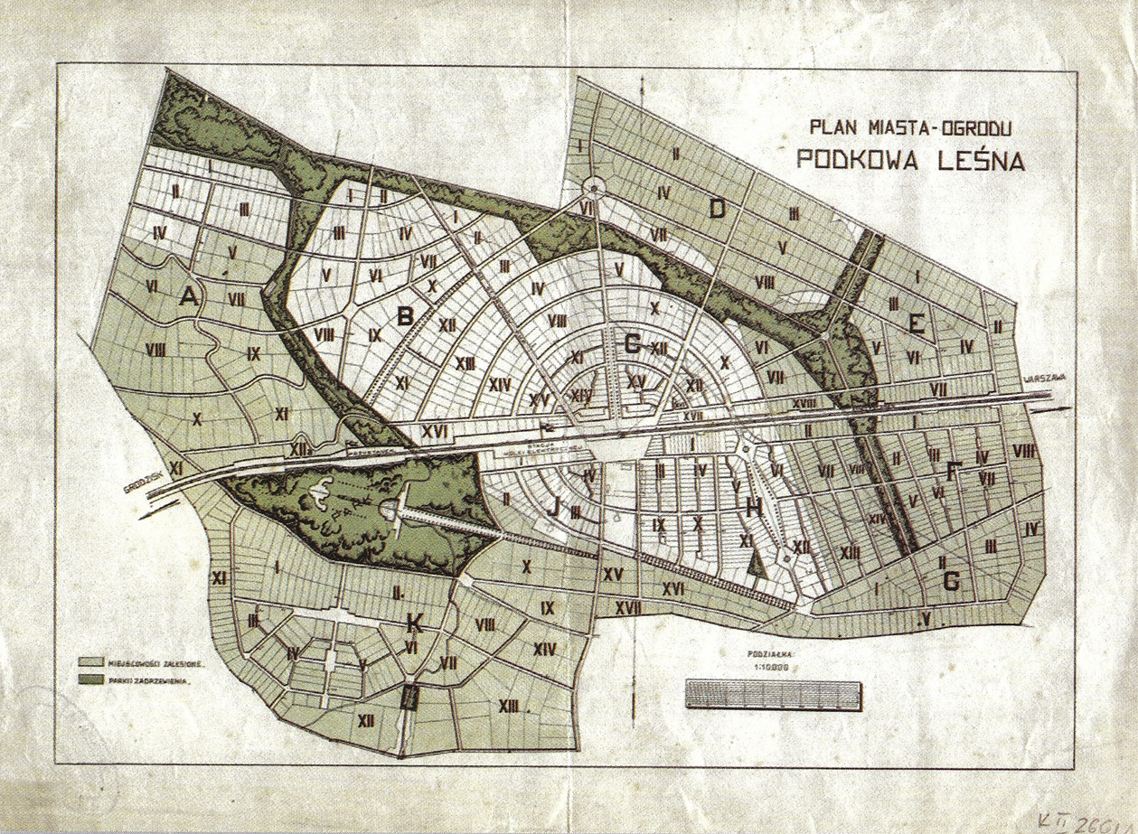 Plan miasta-ogrodu Podkowa Leśna według Antoniego Jawornickiego z 1925 roku. Kliknij aby powiększyć.